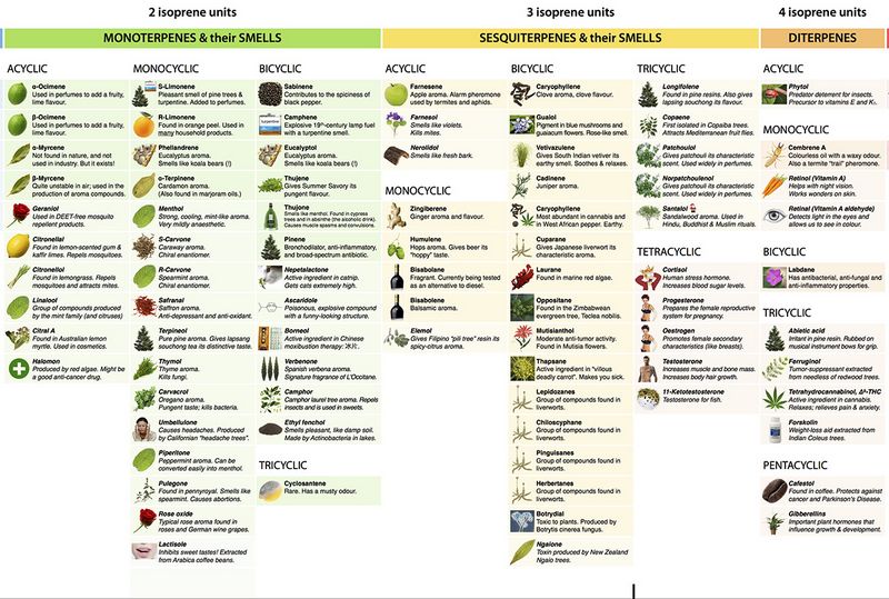 Ce qui suit est une description des effets et des points d'ébullition des terpénoïdes.