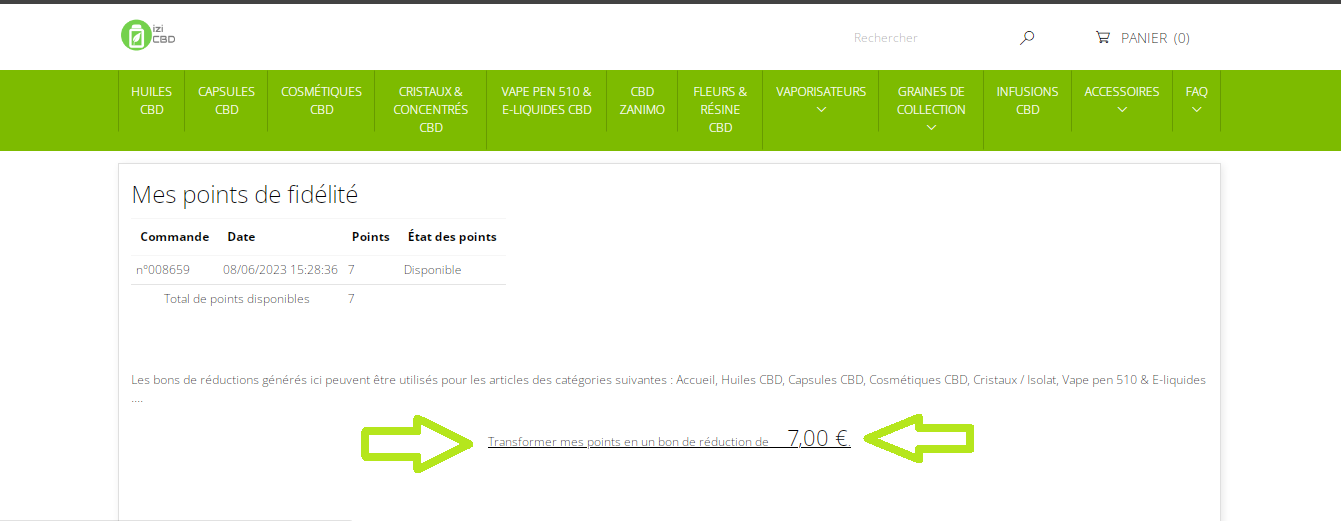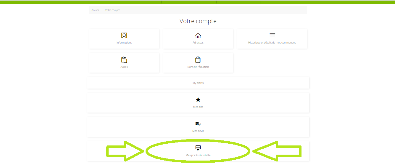 Consulter votre solde de point en cliquant sur la case : Mes points fidélité
