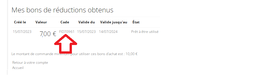 Le montant de commande minimum pour utiliser ces bons d'achat est : 10,00 €