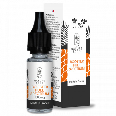 Le Booster CBD Full Spectrum Nature & CBD est disponible en 1000 ou 2000 mg de CBD. Il se compose d’une base de propylène glycol et de glycérine végétale, parfaite comme support au CBD.