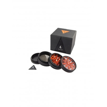 Attention : pièce unique en son genre ! Le grinder Thorinder est composé de 4 parties toutes aussi bien finies les unes que les autres. C’est un broyeur Premium fabriqué en aluminium anodisé et acier inoxydable. Présenté dans un écrin style bijou, ce grinder possède une fenêtre pour observer et surveiller l’efficacité de son broyage. Ses dents sont d'une forme unique et ont un profil breveté (Teeth-Tec™), leur forme d'aileron de requin garantit un broyage 100% efficace.