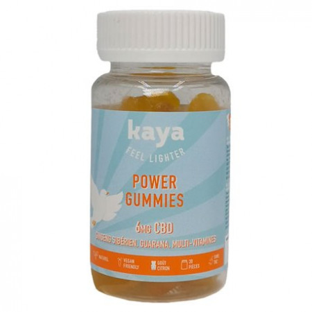 Ingrédients : Saccharose, Glucose, Eau, Agent gélifiant (Pectine), Correcteur d'acidité (Acide citrique), Arôme naturel, Extrait de Ginseng Sibérien, Extrait de Guarana, Agent colorant (Curcuma), Pantothénate de Calcium (Vitamine B5), CBD (Extrait d’huile de Chanvre), Pyridoxine HCL (Vitamine B6), Huile de tournesol, Agent anti-agglomérant (Cire de Carnauba)