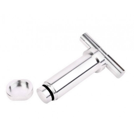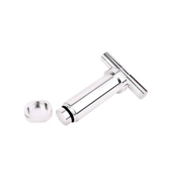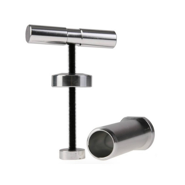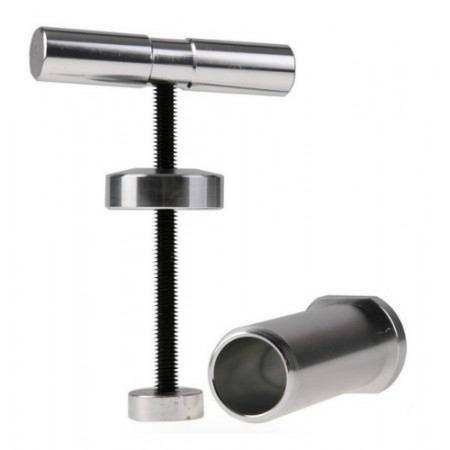 La Press Metal Machine se compose d'un tube sur lequel vient se fixer le système de presse. Composé d'une longue vis terminée d'un coté par la presse, de l'autre d'une poignée, celle ci se fixe au tube principal à l'aide d'un socle vissable. Il vous suffit d'y insérer votre mélange d'herbes pour n'avoir plus qu'à fixer le socle sur le tube et serrer la vis pour presser l'intérieur du tube.