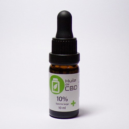 100% naturelle, cette huile de CBD à spectre large contient 10% de Cannabidiol ou CBD, sur support d'huile de Chanvre.