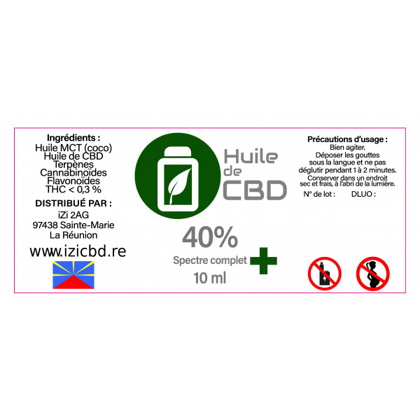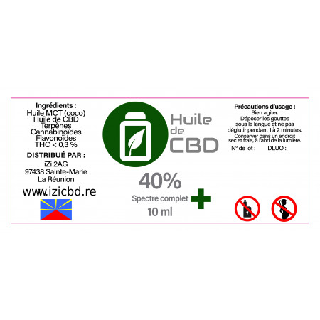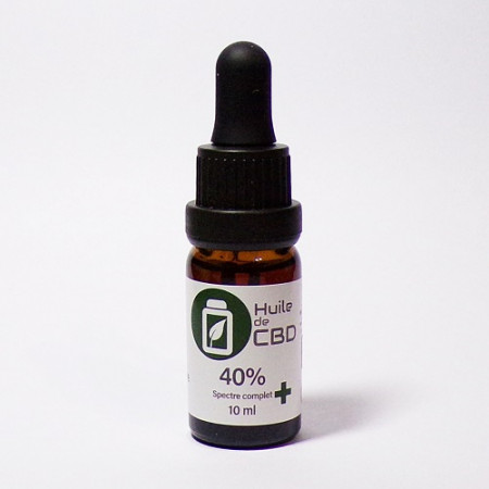 100% naturelle, cette huile de CBD à spectre complet contient 40% de Cannabidiol ou CBD et moins de 0.3% de THC sur support d'huile de Chanvre.