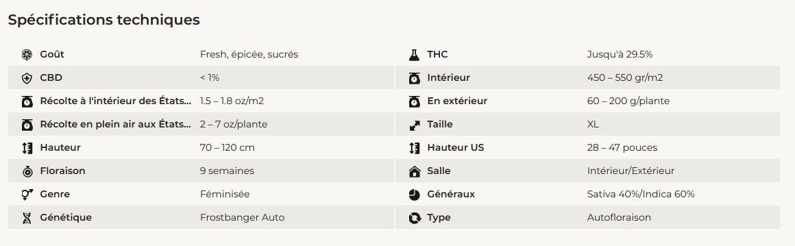 - Une puissance monstrueuse. Une teneur en THC de 29,5 % qui fait fondre l'esprit et qui frappe vite et fort.