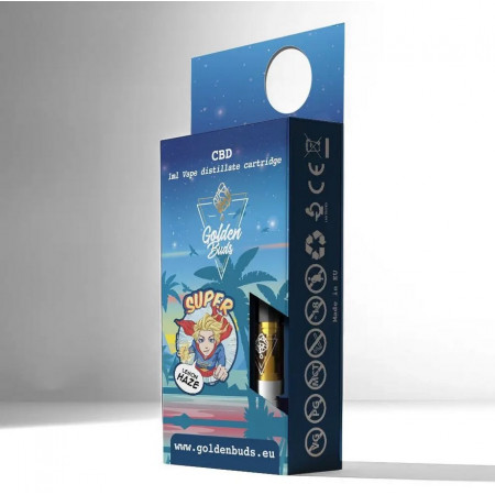 Cette cartouche soigneusement conçue offre 300mg de CBD dans un clearomiseur de 0,5ml sous forme de distillat de CBD "full-spectrum" actif associé à des terpènes naturels (arôme dérivé de chaque variété individuelle) pour améliorer l’absorption et l’effet de notre distillat de CBD haut de gamme à haute concentration. Notre distillat full spectrum Premium, riche en CBD et terpènes est bien sûr garanti sans additifs, sans colorant alimentaire, sans solvants, sans agent conservateur. Toutes nos cartouches utilisent des clearomiseur avec des coils en céramique de haute qualité. Avec Golden Buds, l’époque des odeurs de brûlé et du CBD coupé au mauvais goût appartient maintenant au passé !