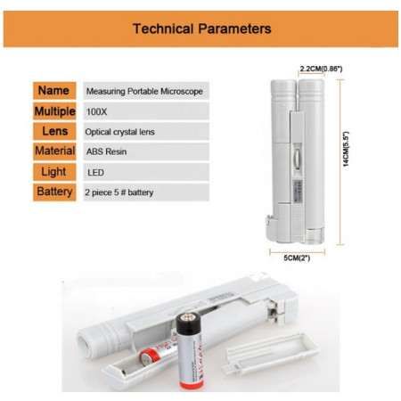 Microscope portable avec grossissement de 100 fois.