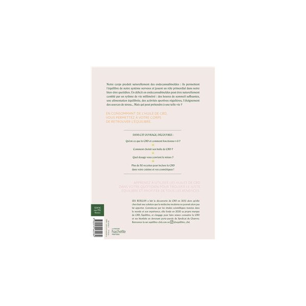 Notre corps produit naturellement des endocannabinoïdes : ils sont en charge de l'équilibre de notre système nerveux et joue un rôle primordial dans notre bien-être quotidien. Un déficit en endocannabinoïdes peut être naturellement comblé par un rythme de vie millimétré : des heures de sommeil suffisantes, une alimentation équilibrée, des activités sportives régulières, l'éloignement des sources de stress... Mais qui peut prétendre à une telle vie ? En consommant de l'huile de CBD, vous pouvez permettre à votre système nerveux de se rééquilibrer. Grâce à cet ouvrage, apprenez à maîtriser les huiles de CBD : comment les choisir, ce qu'il faut savoir sur leur consommation, dans quel domaine elles sont bénéfiques, et comment les consommer pour un résultat optimal à travers une trentaine de recettes alimentaires et cosmétiques. Apprenez à utiliser les huiles de CBD dans votre quotidien pour trouver le juste équilibre et profiter de tous les bénéfices.