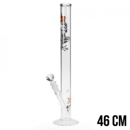 Le bang Smoking Straight est une tuerie, avec sa longue cheminée, il en impose ! Il arbore fièrement une représentation du Lion de Juda, l'air déterminé, portant fièrement une couronne ! Le logo Smo-King est présent à la base du bang, avec une couronne orange étoilée !